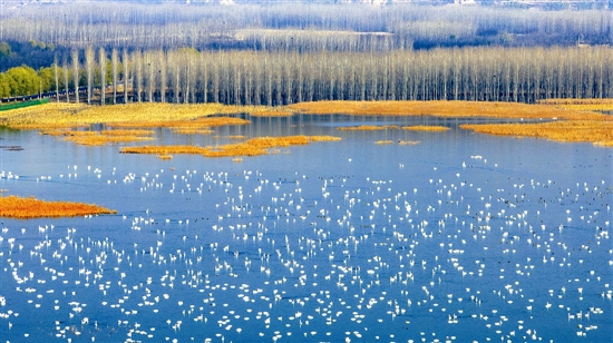 環(huán)境治理精準(zhǔn)發(fā)力。空氣質(zhì)量持續(xù)優(yōu)化,優(yōu)良天數(shù)比率從67.1%升至78.2%,PM2.5平均濃度降至33.41微克/立方米,藍(lán)天白云成為常態(tài)。強(qiáng)化“三水統(tǒng)籌”,黃河三門峽水庫水質(zhì)穩(wěn)定達(dá)到Ⅱ類,飲用水水源地取水水質(zhì)達(dá)標(biāo)率穩(wěn)定在100%,12個國控、省控?cái)嗝嫠|(zhì)穩(wěn)定達(dá)到Ⅲ類水體以上,1.6萬余只白天鵝在此越冬,成為全國最大的白天鵝越冬棲息地。