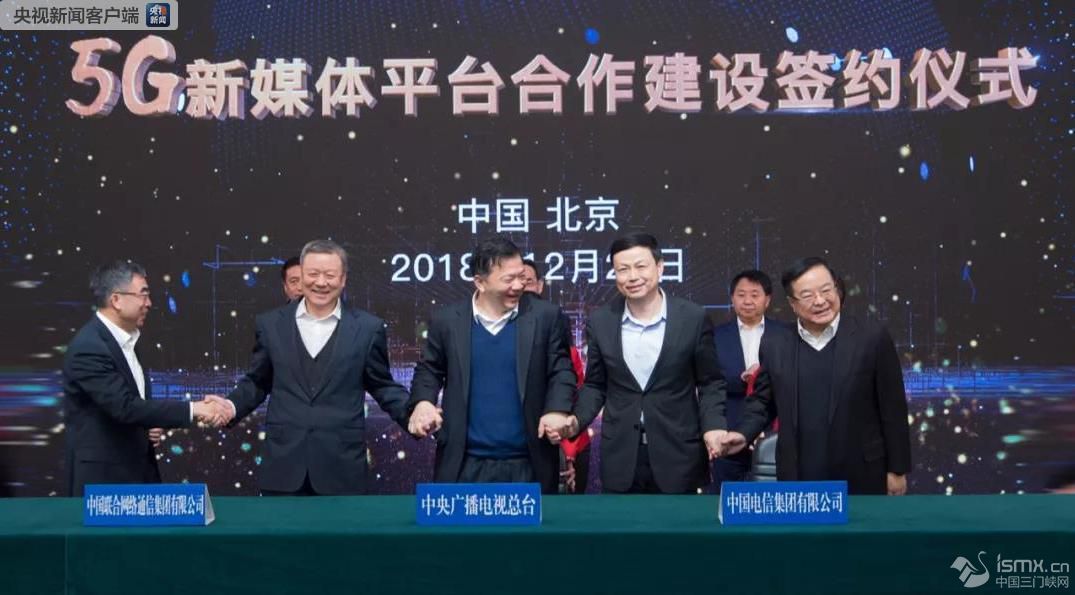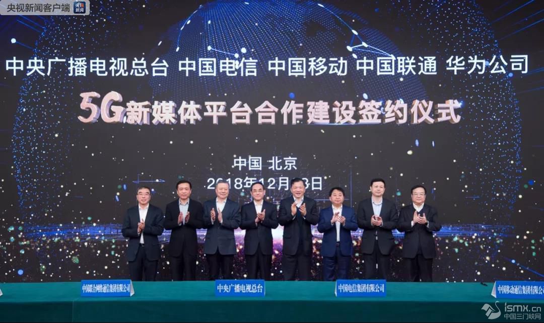 12月28日,我國第一個基于5G技術的國家級新媒體平臺在中央廣播電視總臺開建。當天,中央廣播電視總臺與中國電信、中國移動、中國聯(lián)通及華為公司在北京共同簽署合作建設5G新媒體平臺框架協(xié)議。