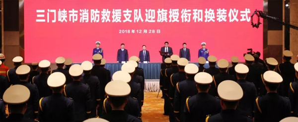 三門峽市消防救援支隊迎旗授銜和換裝儀式舉行