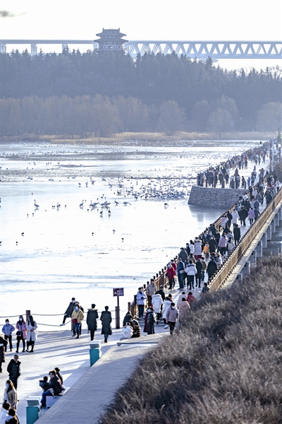 ![]() 春節(jié)假期剛過,天鵝湖國家城市濕地公園又一次出現(xiàn)游人如織的景象,三門峽文旅市場呈現(xiàn)強勁復(fù)蘇態(tài)勢。圖為1月29日(農(nóng)歷正月初八),游客在近距離觀賞白天鵝。 本報記者 杜杰 攝 |