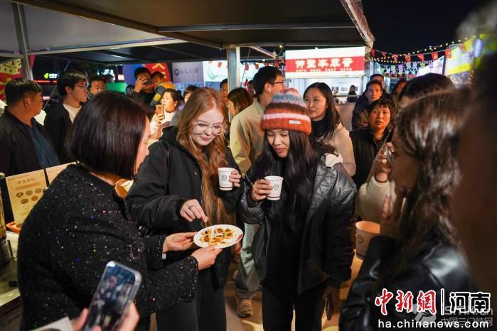 圖為外國友人在品嘗中藥制成的茶點。夏青華 攝 10月22日晚,河南南陽仲景市集煙火繚繞,來自東北的鍋包肉、新疆的烤串、云南的昆蟲宴等天南地北的特色小吃在此同臺競味,吸引眾多市民前來嘗鮮,品嘗跨越山河的南北風味。 責任編輯:王宇 ( 編輯:tln ) |