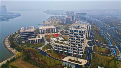 航拍下的鄭州北龍湖超聚變研發(fā)中心及總部基地項目。本報資料圖片 記者 聶冬晗 攝