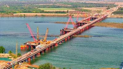11月14日,位于洛陽市孟津區(qū)的焦?jié)迤疥P(guān)鍵性節(jié)點工程洛陽黃河公鐵大橋,已進入主體工程實質(zhì)性施工階段。王宏欣 攝